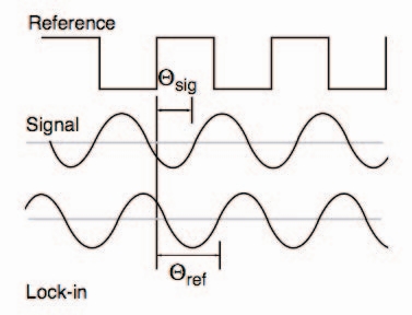 信号波形为Vsig.Sin(ωrt+θsig) ,Vsig: 信号振幅(Amplitude)ωr : 参考频率θsig : 信号的相位Lock-in本身的相位锁定回路(Phase locked loop - PLL)会产生自己的内